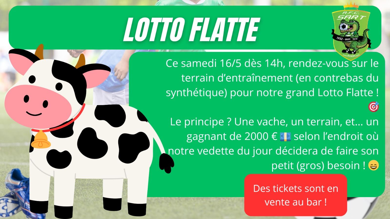 Le samedi 16/5 dès 14h, rendez-vous sur le terrain d’entraînement (en contrebas du synthétique) pour notre grand Lotto Flatte !